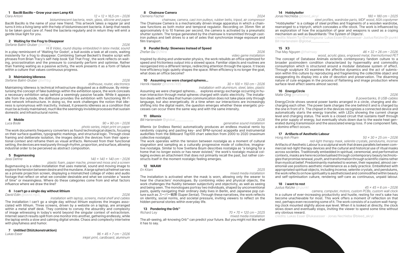 The New Media class at Berlin University of the Arts engages in various research, development, and collaborative activities in regard to emerging trends in the fields of art and design, with digital thinking at the core.