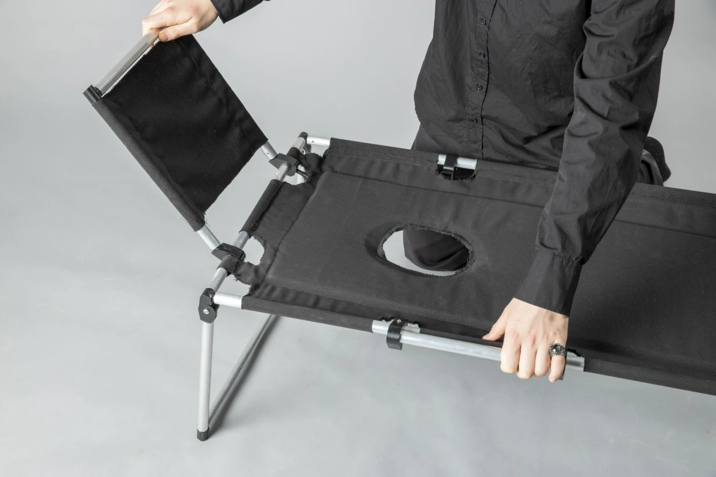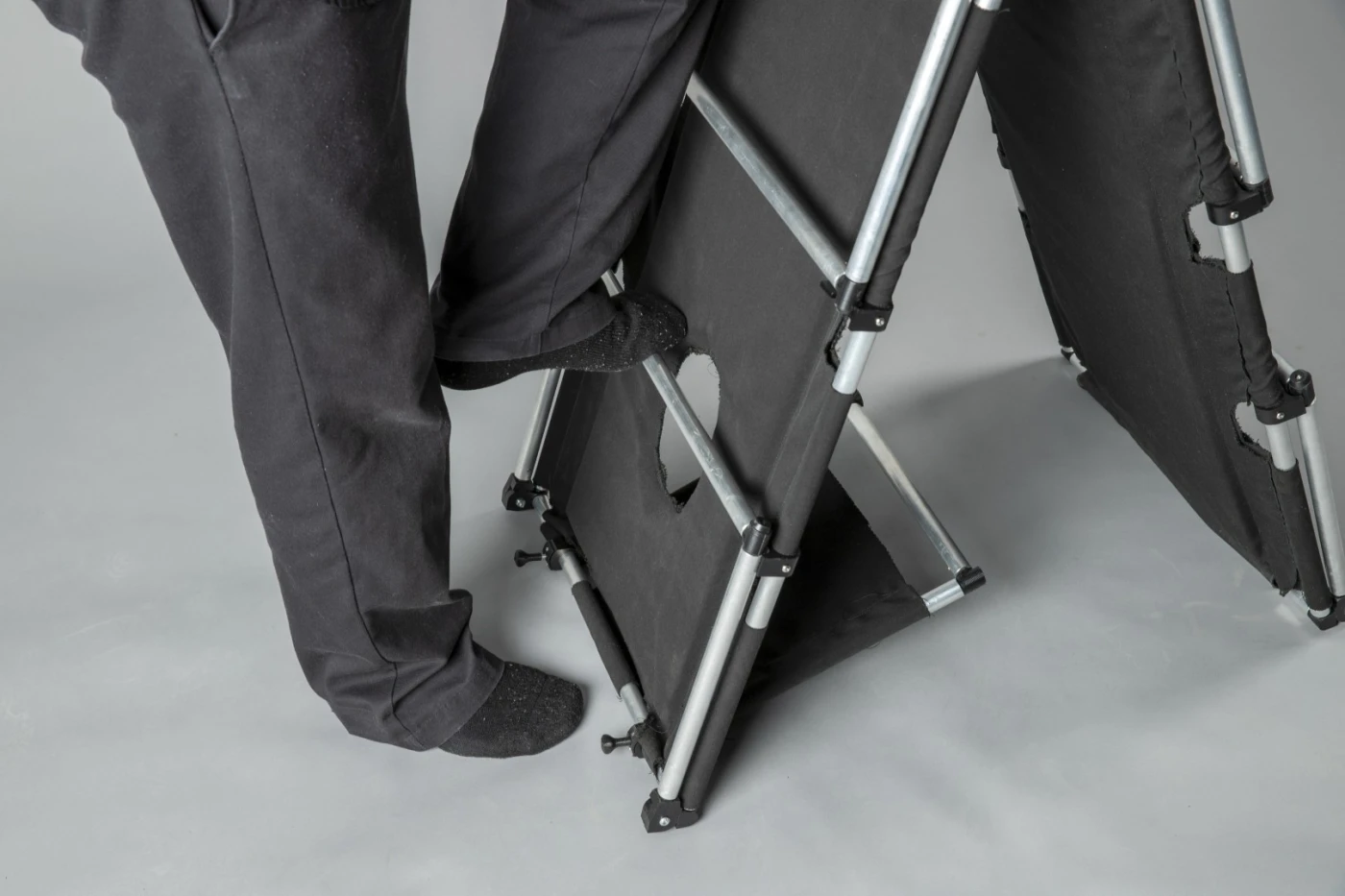 A portable, unobtrusive and – if possible – comfortable object gives visitors the freedom to adopt new and unusual perspectives in terms of viewing time, angle, distance and height. In addition, the designers are given more freedom in the placement of the exhibits, as the rooms can be used more extensively. Furthermore, unplanned perspectives allow for an individual recontextualization of the exhibition locations, pieces and viewers, thereby rethinking the work-space-viewer hierarchy. The work is intended as a prototypical design for a museum tool that is as universal as possible.
